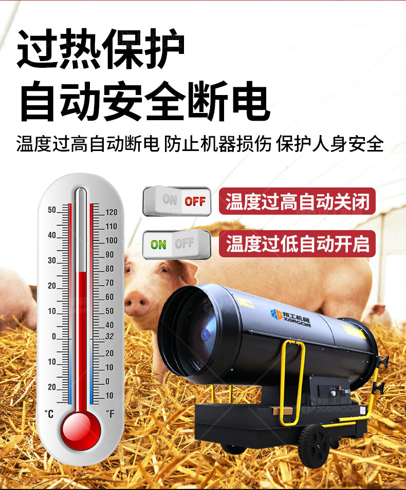 燃油暖風(fēng)機(jī)可用于工廠倉(cāng)庫(kù),高大空間的供熱。 直燃熱風(fēng)機(jī),沒有煙囪; 燃料為柴油或者煤油; 氣體霧化燃燒器;