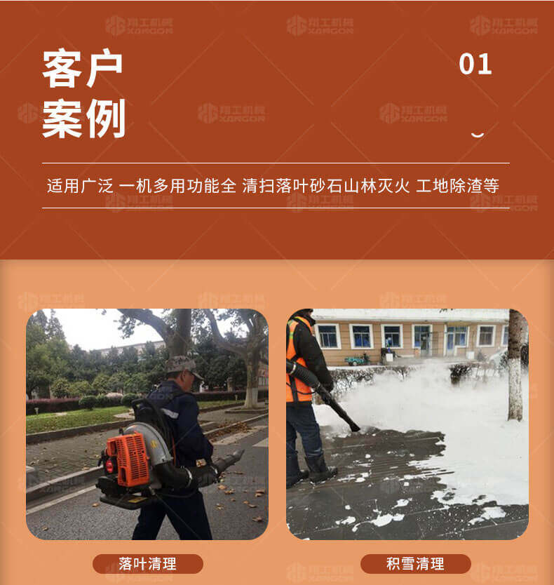 本機(jī)適用于修公路吹灰塵和吹雪,吹雪厚度達(dá)到15公分以上,鐵路上吹沙子,萊大柵溥膜上和露天的變壓器上吹雪(露天變壓器上吹雪時,需再配2.8米的伸縮噴風(fēng)管)。公園內(nèi)吹落葉,院子內(nèi)吹雪及森林防火等.