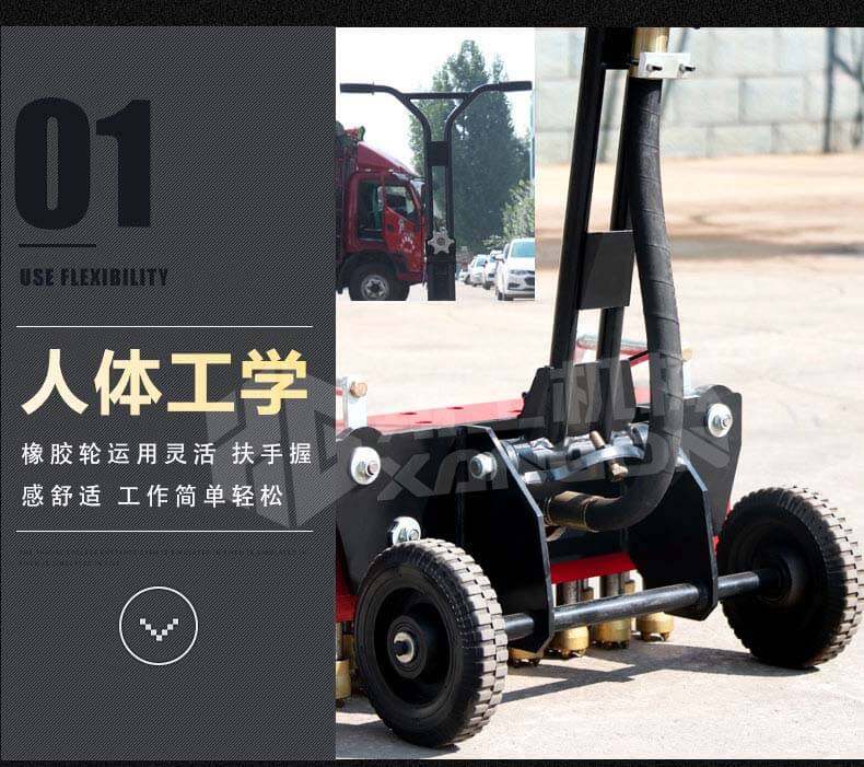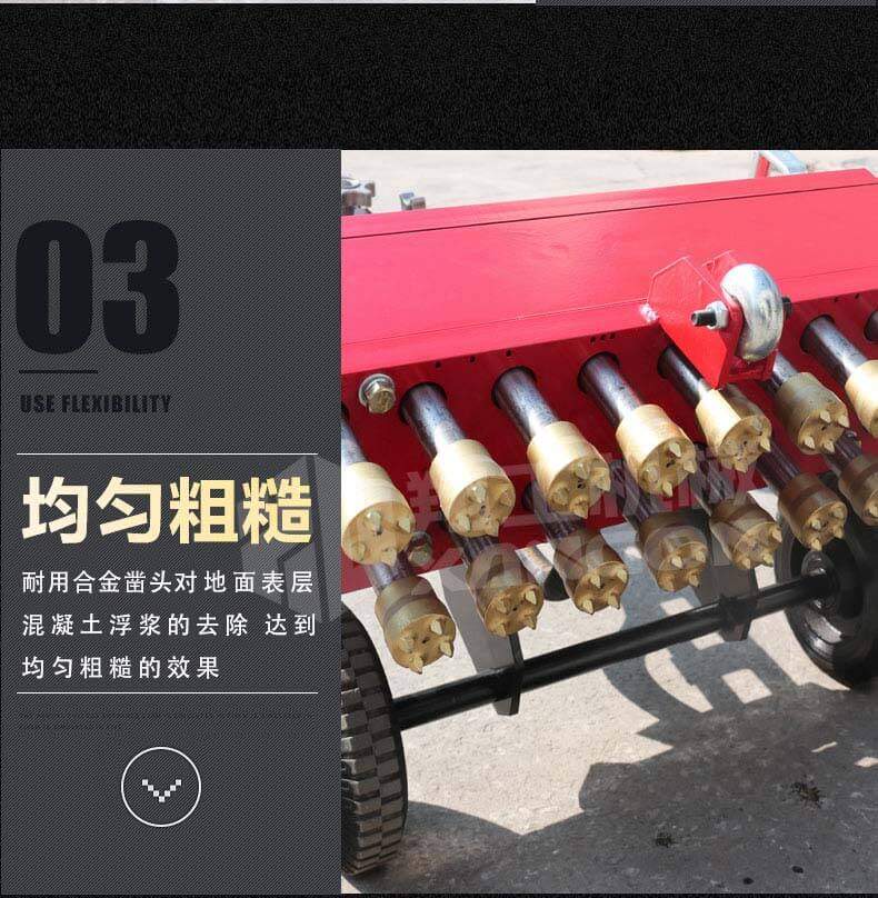 XG-P17A手推式地面鑿毛機(jī),主要為高速公路、高速鐵路的橋面、機(jī)場(chǎng)、橋梁、停車場(chǎng)等各種混凝土地面新建鋪裝時(shí)對(duì)地面表層混凝土浮漿的去除,達(dá)到均勻粗糙而設(shè)計(jì)的。對(duì)各種陳舊地面做翻新前的地坪處理;去除破損地面凸起部分;環(huán)氧樹脂地面鑿毛;地面做防滑面;對(duì)需二次鋪裝新舊面層打毛等具效率高的鑿毛工具。