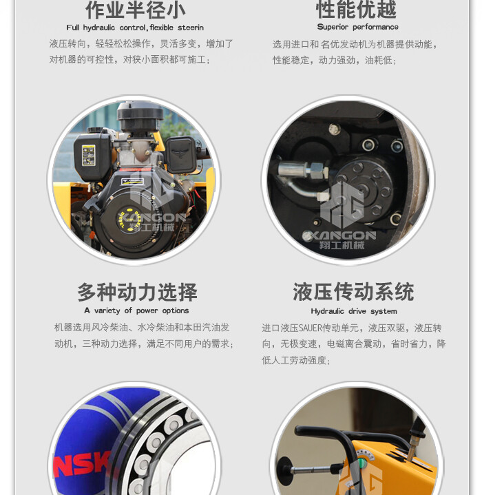 4.發動機電啟動,機器振動電磁離合控制,操作更加輕松方便;