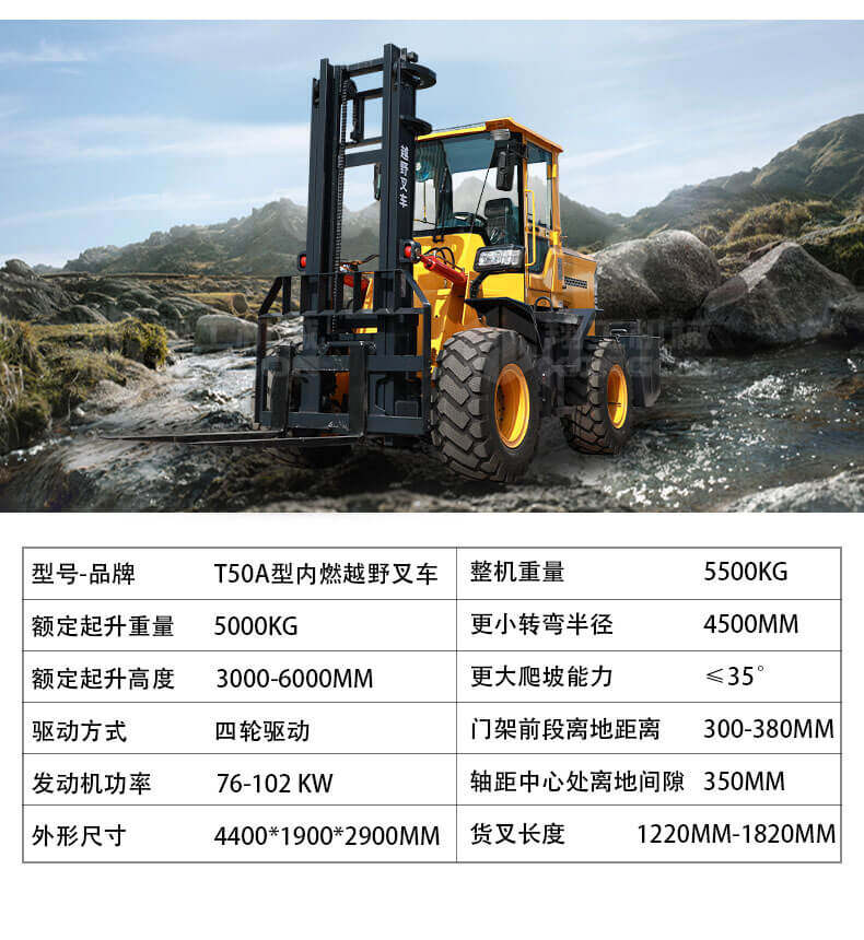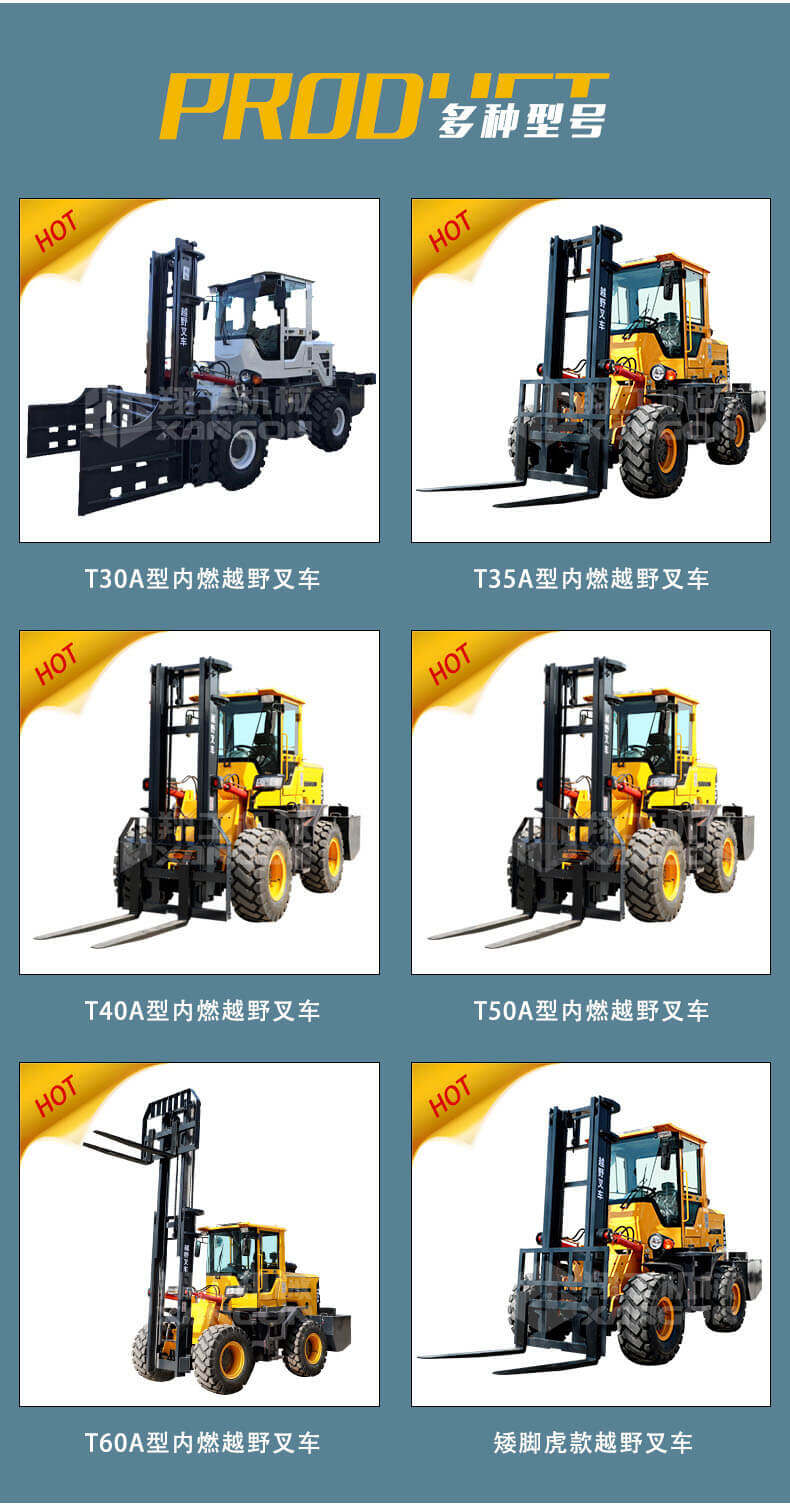 3.普通叉車只能在平整的路面上作業,而越野叉車既可以在普通路面上作業,還可以在山路泥路崎嶇道路作業,輪胎抓地力強,不打滑。