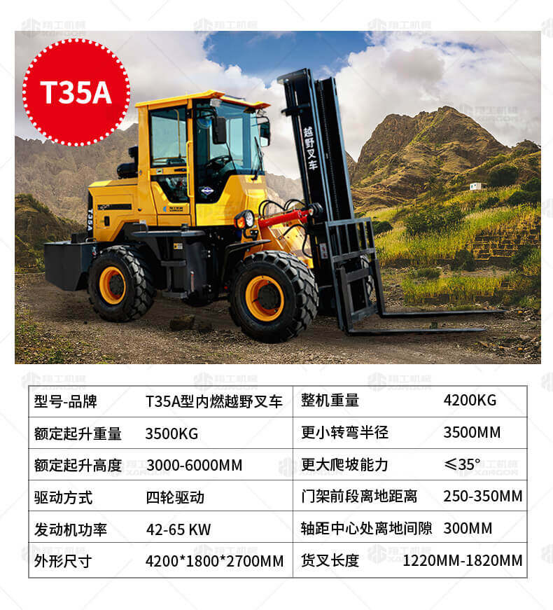 越野叉車可以在坡地和不平地面上進行貨物裝、卸、堆垛及搬運作業,具有良好的機動性、越野性可靠性。其功能多樣,可搭配側移器、調距叉、旋轉器、軟包夾、推出器、側翻叉、側翻斗、起重臂等工具完成不同的工作。