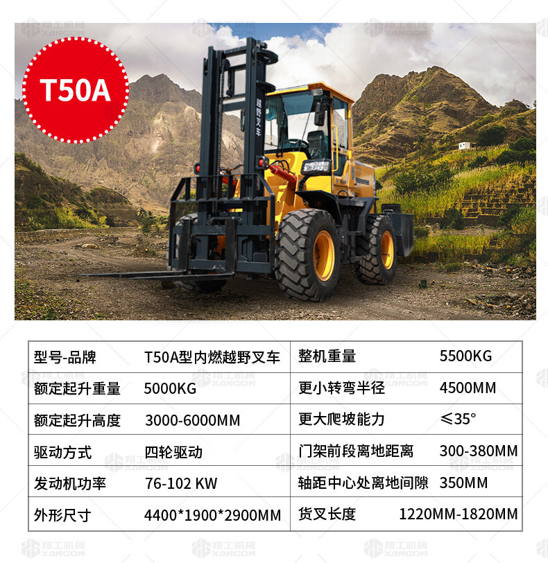 3.普通叉車只能在平整的路面上作業,而越野叉車既可以在普通路面上作業,還可以在山路泥路崎嶇道路作業,輪胎抓地力強,不打滑。