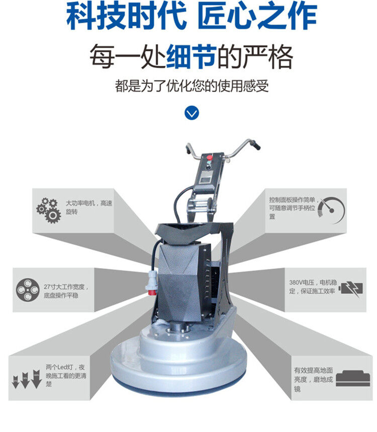 拋光機(jī)是為了讓地面表面有光澤,需要先研磨后才可以拋光。拋光分為粗拋和精拋,這時候可以使用拋光機(jī),配合拋光墊,提高地面的光澤度。高速地坪拋光機(jī)讓你輕松完成地坪拋光工作,提高地坪亮度。