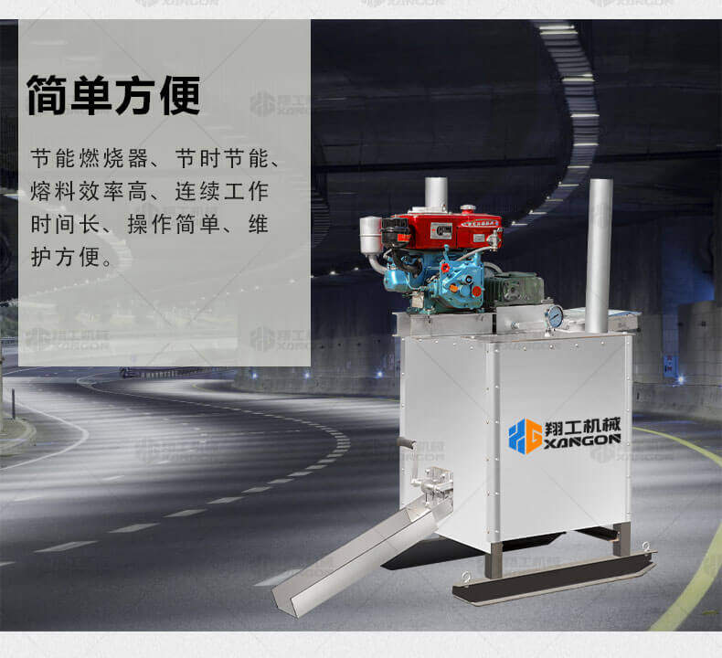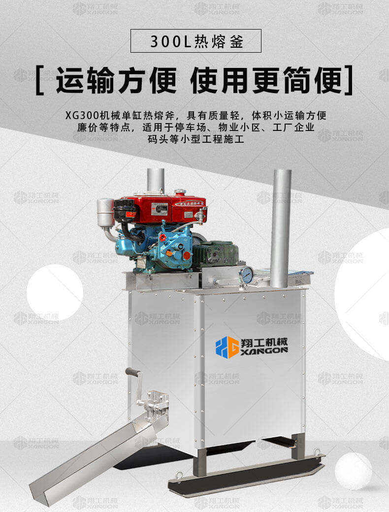 單杠熱熔釜是一款熱熔標(biāo)線施工的主要設(shè)備之一。標(biāo)線施工時(shí),先利用熱熔釜將粉末狀涂料加熱,攪拌,直到熱熔變成液態(tài)后,再將涂料放入劃線機(jī)內(nèi)進(jìn)行劃線施工。