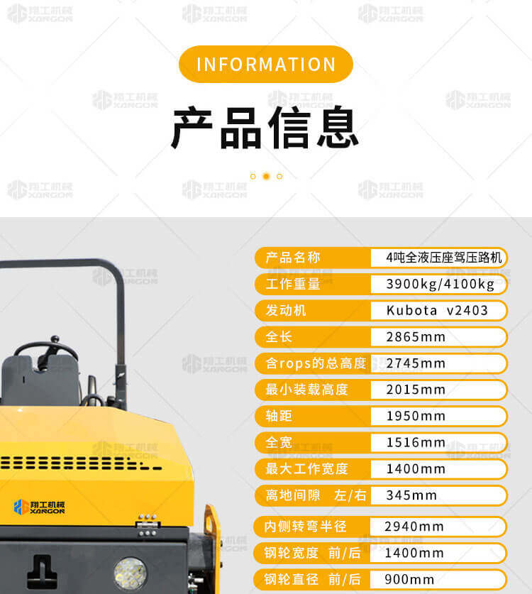XYL-1400 4噸雙鋼輪全液壓座駕壓路機(jī)