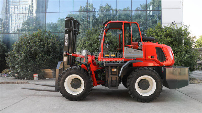 6.越野叉車較普通叉車車身離地間隙高,可跨越場地上的障礙物。